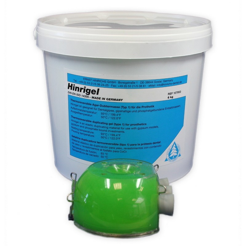 Il gel per duplicazione a scorrimento fine è adatto per rivestimenti e gessi dentali. Hinrigel ha un'elevata elasticità e stabilità del volume.