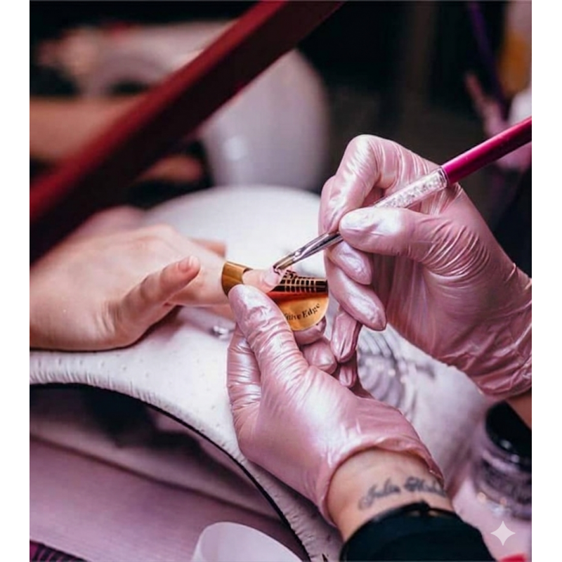 Guanto monouso rosa in nitrile peso 4.0 gr con finitura microruvida. Lunghezza 24 cm circa. Qualità controllata AQL 1,5. Piacevole e vellutato sulla pelle.