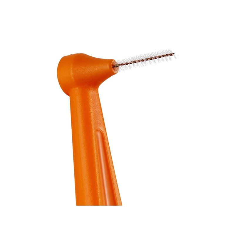 TePe Angle è una buona scelta per chi preferisce un manico più lungo o quando la manualità è ridotta. Dispone di una testina angolata per facilitare l’accesso, specialmente tra i denti posteriori. Il manico lungo e piatto offre un’impugnatura stabile ed ergonomica.